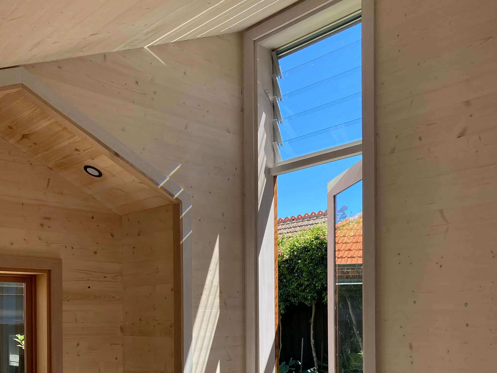 The interior of solid baltic pine boards and polished concrete is a place of clarity and calm. A major priority was to minimise impact on the garden, achieved beyond expectations.