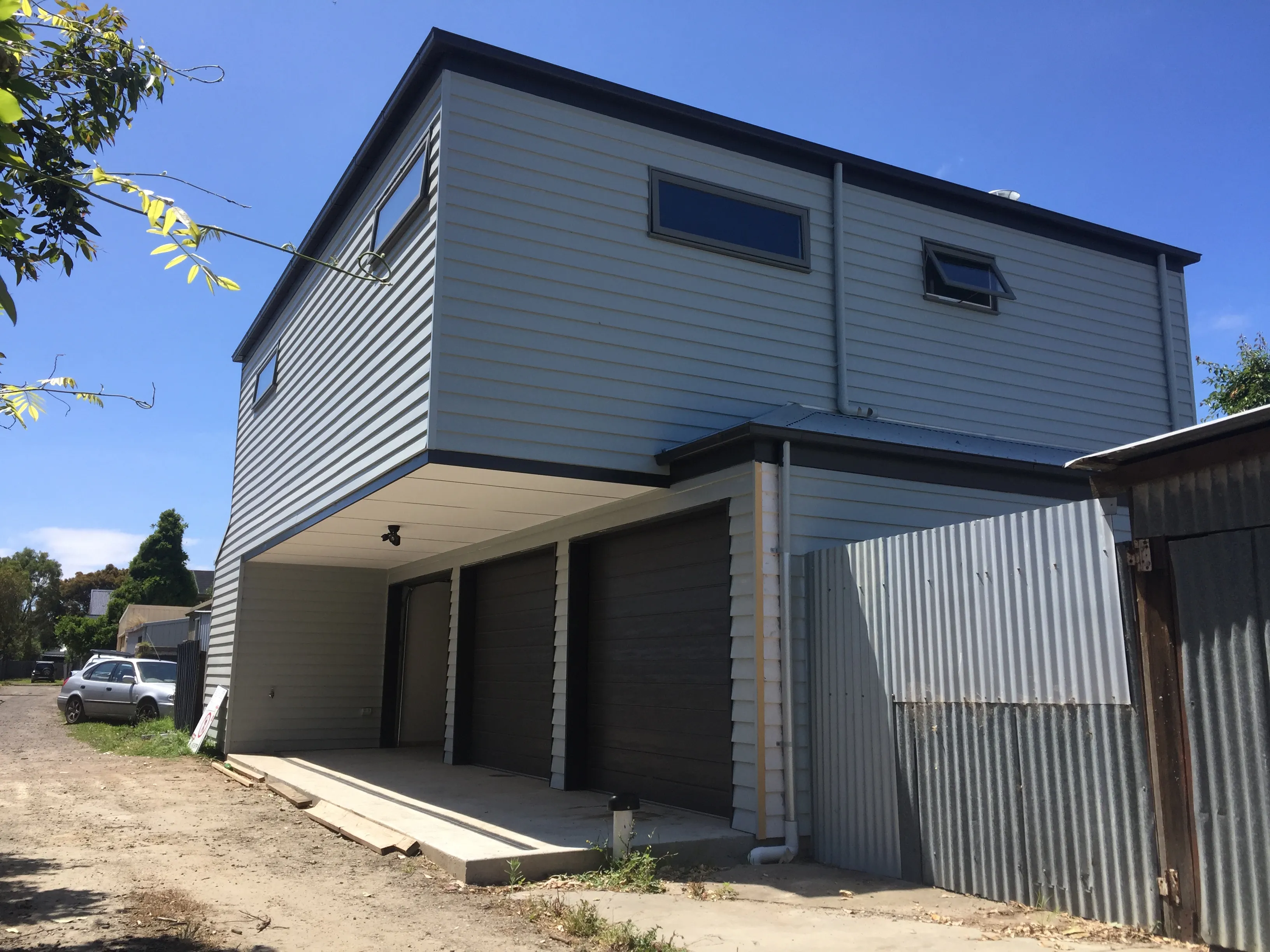 The ground floor provides ample room for a vehicle, workshop and storage, while the upper level serves as a retreat complete with a fully equipped kitchen and bathroom.